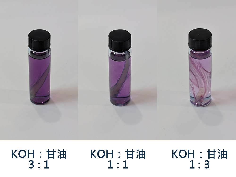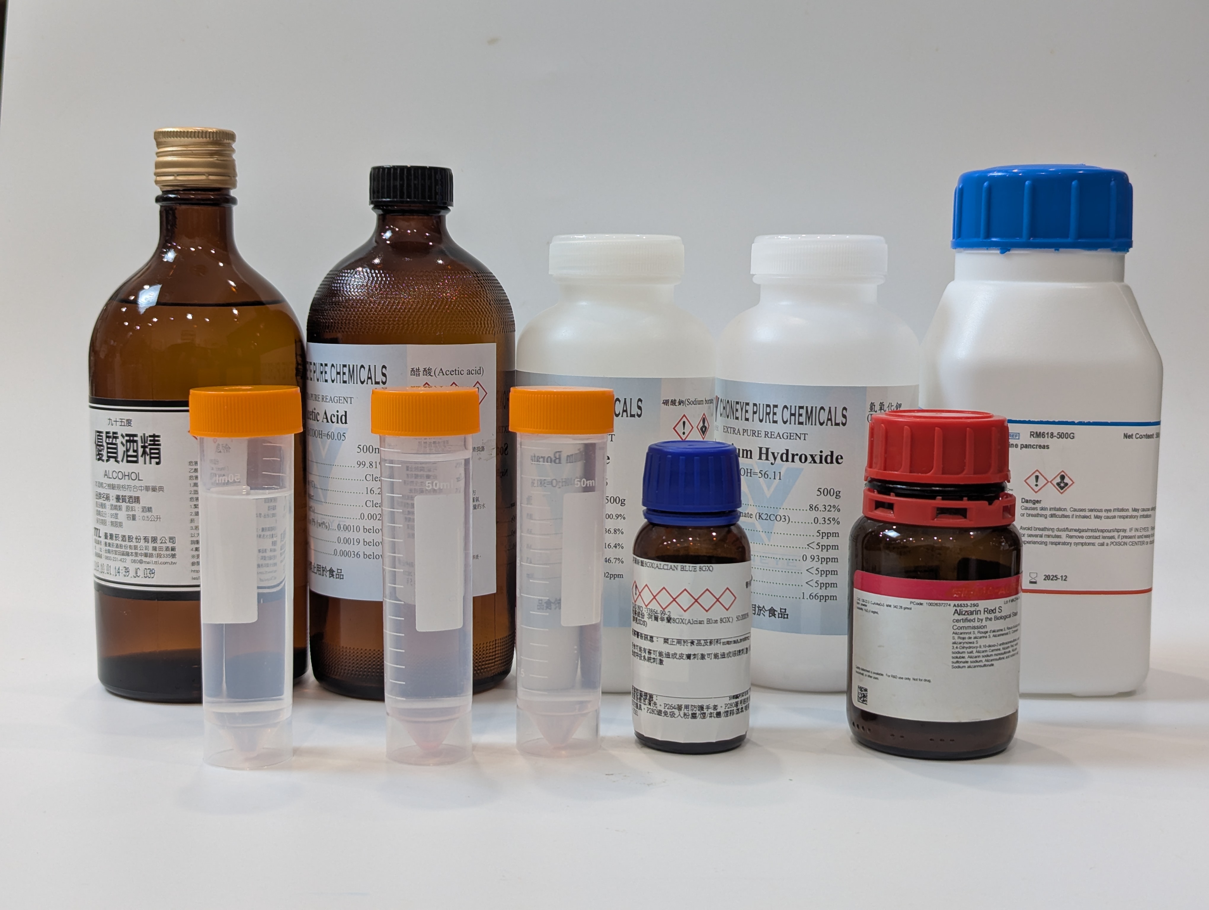 透明標本製作需要用到許多藥品,每種藥品用量和使用比例皆不相同。可以斟酌考慮購買或取得管道
